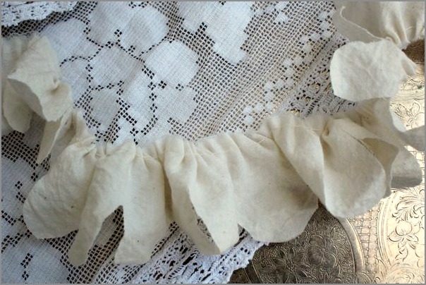 5. Agora para cortar as pétalas. Corte em ondinhas as extremidades abertas da tira. Cada ondinha é de aproximadamente 2,5 polegadas. Se você fizer uma pequena marca na extremidade aberta a cada 2,5 polegadas que vai ajudar a guiá-lo como você corta.