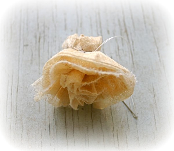 Quando você pode ver que você vai ter apenas o suficiente para envolver o tecido restante em torno da haste, seringueiro sua linha de cola em direção ao tronco. Siga com o tecido. Em seguida, cola a última do tecido firmemente contra o tronco. E há sua rosa aberta!