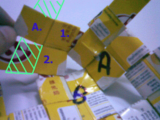 Dobre o laço B. para cima, marque-o como 1. (Veja a fotografia seguinte)