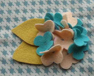Pode costurar a mão ou usar cola quente para prender as folhas.
