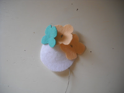 Começe costurando as flores pela beirada do círculo.Vai sobrepondo.
