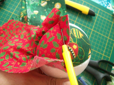 Uma vez no lugar, você pode colá-los com algumas gotinhas de cola quente. Depois é só tirar o alfinete que eles ficarão no lugar.